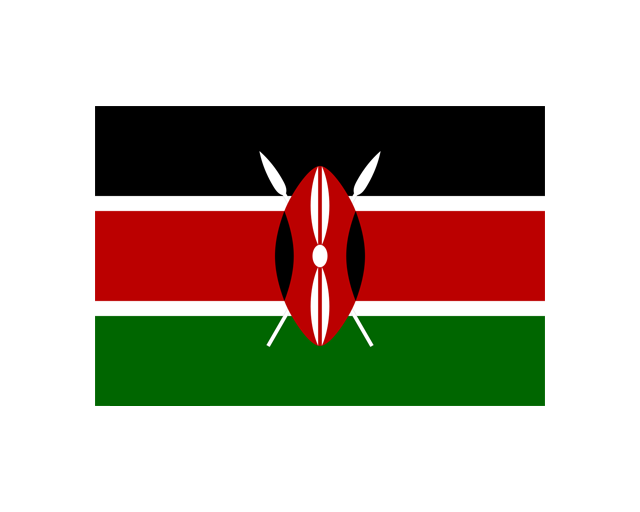 肯尼亞共和國(guó)(The Republic of Kenya)位于非洲東部,赤道橫貫中部,東非大裂谷縱貫?zāi)媳保锥純?nèi)羅畢,肯尼亞是人類發(fā)源地之一。肯尼亞國(guó)旗是根據(jù)獨(dú)立前肯尼亞非洲民族聯(lián)盟的旗幟為基礎(chǔ)而設(shè)計(jì)的。呈長(zhǎng)方形,長(zhǎng)與寬之比為3:2。自上而下由黑、紅、綠三個(gè)平行相等的橫長(zhǎng)方形構(gòu)成,紅色長(zhǎng)方形上下各有一白邊。旗面中間的圖案為一面盾和兩支交叉著的長(zhǎng)矛。黑色象征肯尼亞人民,紅色象征為自由而斗爭(zhēng),綠色象征農(nóng)業(yè)和自然資源,白色象征統(tǒng)一與和平;矛和盾圖案象征祖國(guó)統(tǒng)一和為捍衛(wèi)自由而斗爭(zhēng)。