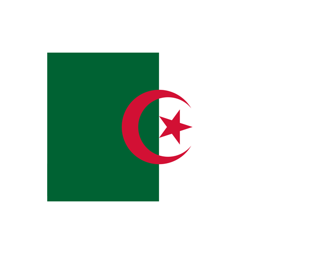 阿爾及利亞,全稱阿爾及利亞民主人民共和國(guó),是非洲北部馬格里布的一個(gè)國(guó)家,首都是阿爾及爾。阿爾及利亞民主人民共和國(guó)國(guó)旗呈長(zhǎng)方形,長(zhǎng)與寬之比為3∶2。旗面由左綠右白兩個(gè)平行相等的豎長(zhǎng)方形組成,中央為一彎紅色新月和一顆稍微傾斜的紅色五角星。綠色象征未來(lái)的希望,白色代表純潔與和平,紅色象征革命和為理想而奮斗的獻(xiàn)身精神。阿爾及利亞以伊斯蘭教為國(guó)教,新月和五角星是這個(gè)穆斯林國(guó)家的象征。