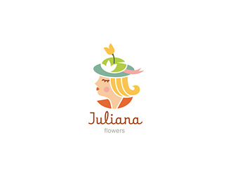 JULIANA花卉/花藝商店標志使用一位漂亮的女士形象,花卉制作的帽子是該標志的特征,整體的色彩豐富柔和。