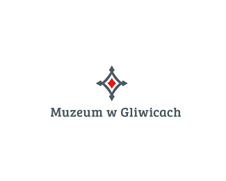 MUSEUMINGLIWICE博物館標(biāo)志,抽象對(duì)稱的圖形,中間的紅色是識(shí)別色。