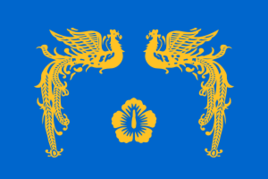 藍色旗面上,兩只鳳凰在國花木槿上飛翔,寄寓韓國總統是國家繁榮穩定的保證