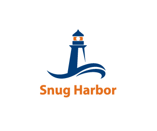 舒適的港灣標志設計欣賞,標志主要組成部分是由燈塔和海浪設計的。
