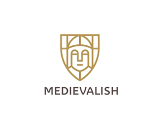 盾牌元素標志設計采用了中世紀的表現手法,人物描繪以線條構成,粗細均等的線條將人物和盾牌有效結合,標志整體簡潔對稱。