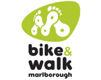 Bike Walk Marlborough馬爾堡自行車、步行中心標志設計,融入自行車鏈條和腳步元素,整體以綠色為識別色。