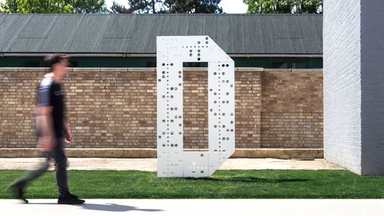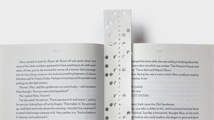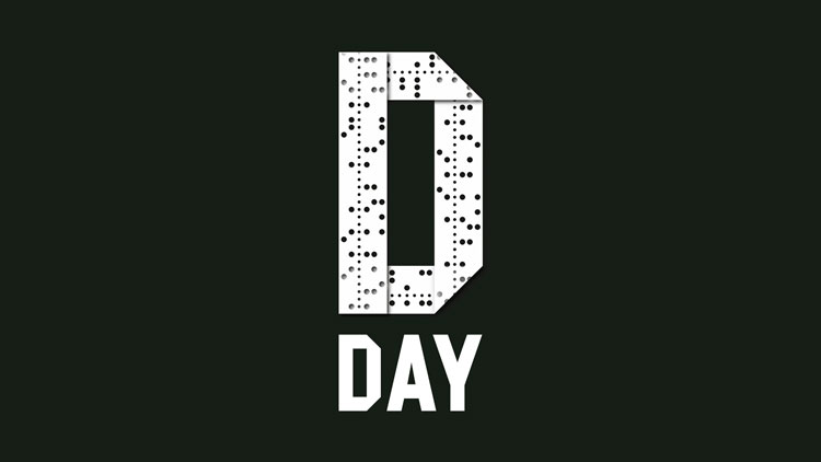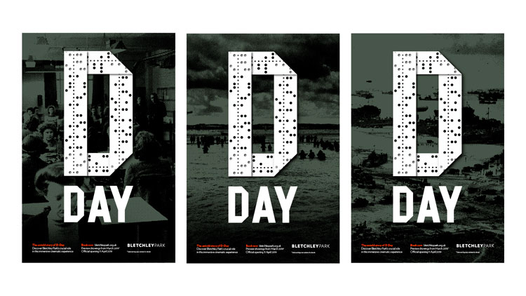 另一個(gè)微妙之處是展覽的三個(gè)主要部分?jǐn)r截,情報(bào)和入侵已印在股票代號(hào)“D”的紙帶上在代碼中象征。點(diǎn)狀的紙帶圖案被用在新身份的所有觸點(diǎn)上,比如書(shū)簽等文具上,以及現(xiàn)在坐落在布萊切利公園(Bletchley Park)電傳打字機(jī)大樓外的一個(gè)新的永久性鋼鐵紀(jì)念碑上。